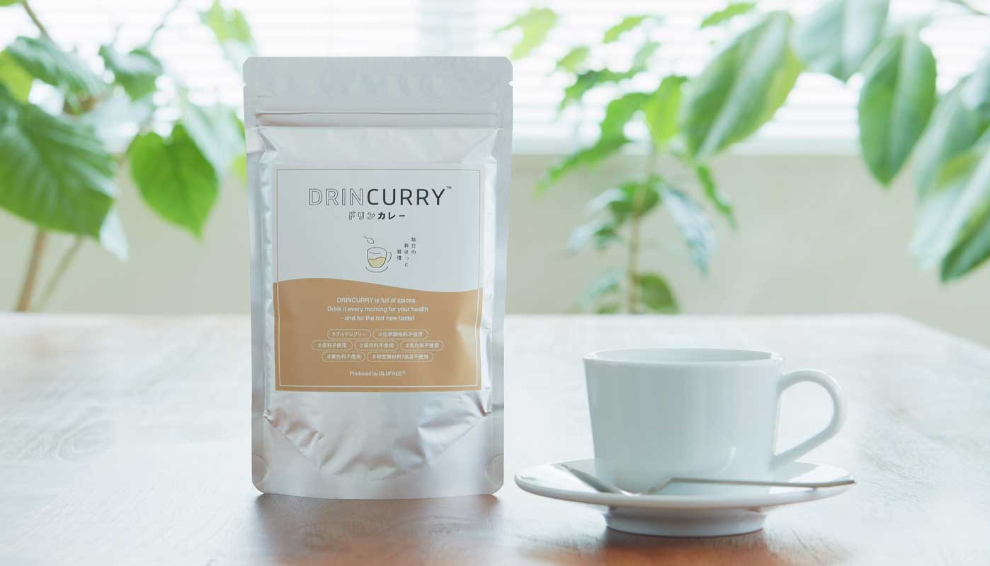 「ドリンカレー」は、グルテンフリー&無添加のインスタントコーヒーのようにカレーのパウダーを、さっとお湯に溶かして飲む、新しいタイプのホットドリンクです。