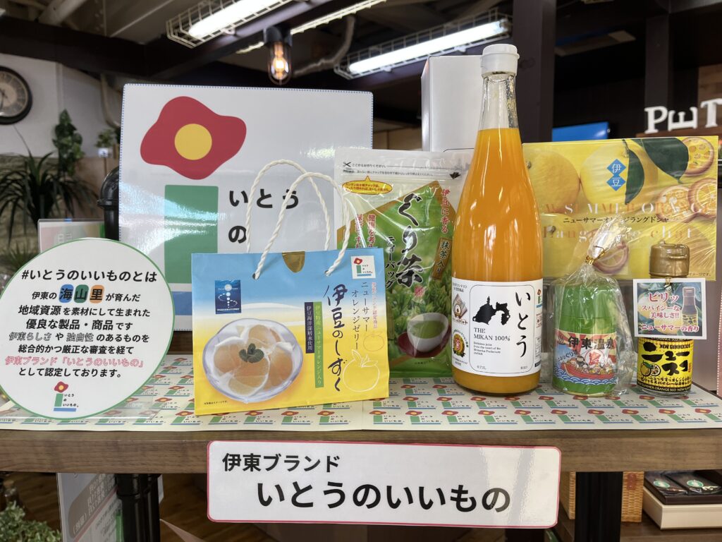 伊東のぐり茶、ミカンやニューサマーオレンジなどの柑橘の商品、海の幸を使った商品などなど。